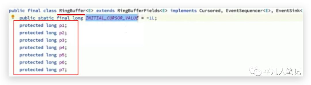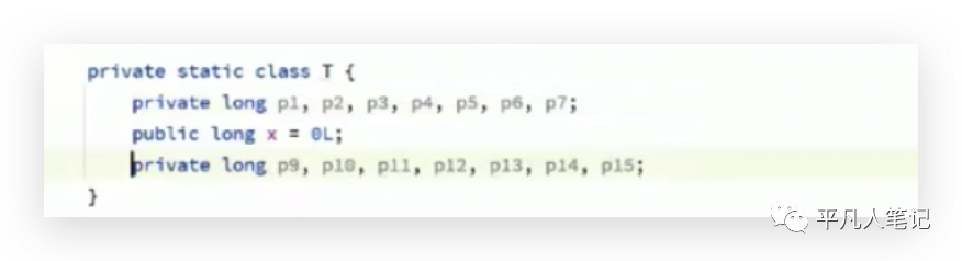 第一个属性是起始值,后面是7个无业务含义的数据,其存在的目的是可以保证p1属性往后组合的时候不会和别的p1属性位于同一个缓存行。