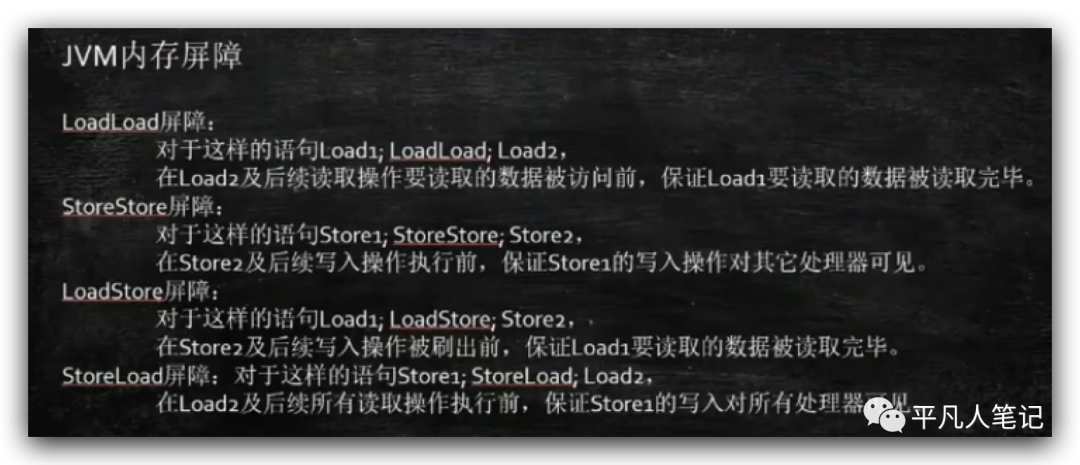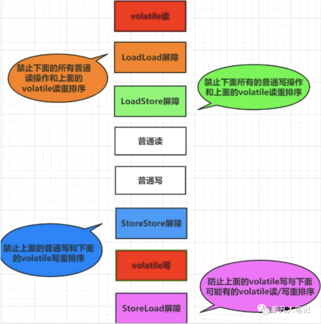 在jvm层做一个特殊的操作,jvm规定volatile所修饰的变量,对这块内存做写操作的时候,在它前面必须加一个屏障SS,后面加个屏障叫SL,前面的所有写操作必须先执行完,然后再往里面写,必须等我写完,别人才能读。