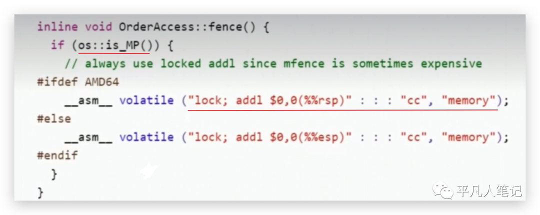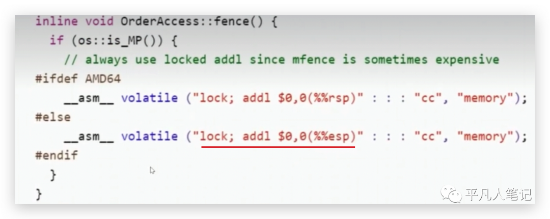 is_MP方法是判断是否为多个处理器(或多个cpu),如果是的话就执行lock addl,l是lense的意思,rsp或esp是寄存器指令 ,把某个寄存器的值加上一个0,为什么lock指令可以实现禁止指令重排序?