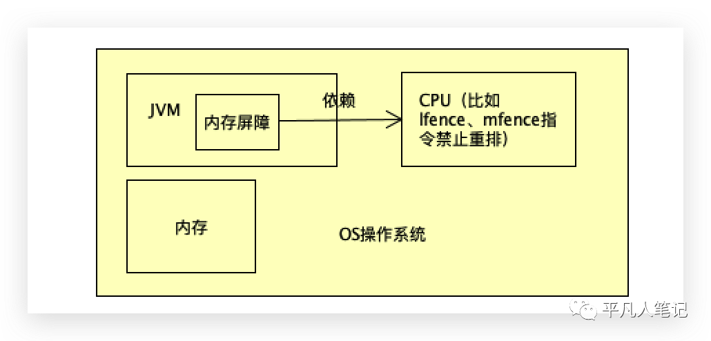 jvm在os系统看来只是一个很普通的程序而已,jvm在自己的程序里规定了好多屏障,最终这些屏障的实现也得靠cpu和os提供的能力。