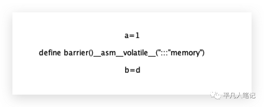 a=1和b=d这两个指令在编译器编译的时候不能换顺序执行,这种被称为内存屏障。