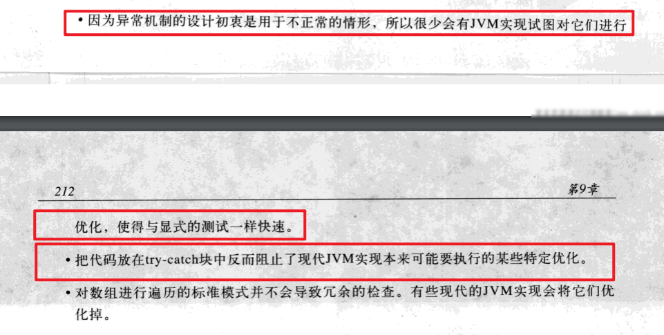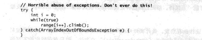 《Effective Java》书中说的其实是不要用 try-catch 来代替正常的代码,书中的举例了正常的 for 循环肯定这样实现: