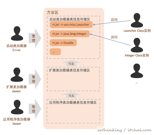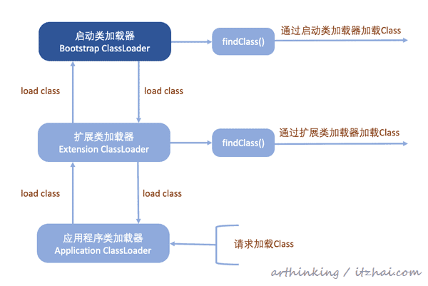 启动类加载器是JVM的内部实现,在JVM申请好内存之后,由JVM创建这个启动类加载器