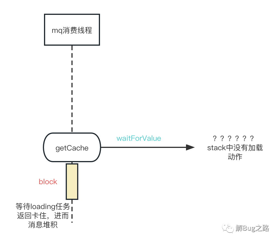 那么mq消费线程在等待谁呢?笔者搜索了整个stack,没有找到guavaCache的load函数相关的线程。对应guavaCache的业务代码大致如下