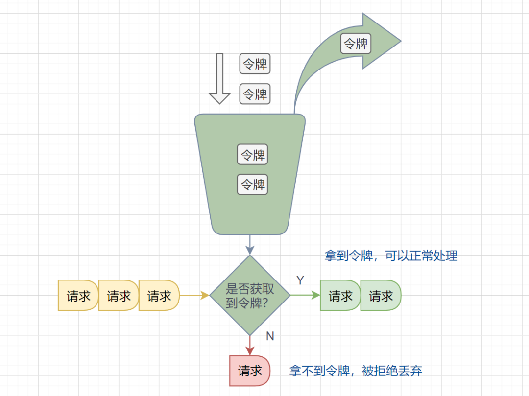 但是面对突发流量的时候,漏桶算法还是循规蹈矩地处理请求,这不是我们想看到的啦。流量变突发时,我们肯定希望系统尽量快点处理请求,提升用户体验嘛。