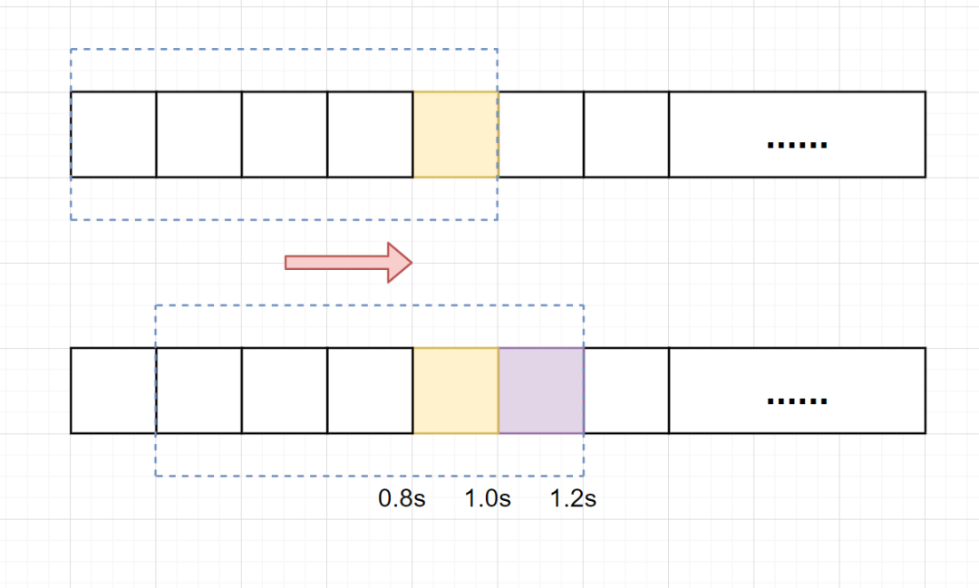 假设单位时间还是1s,滑动窗口算法把它划分为5个小周期,也就是滑动窗口(单位时间)被划分为5个小格子。每格表示0.2s。每过0.2s,时间窗口就会往右滑动一格。然后呢,每个小周期,都有自己独立的计数器,如果请求是0.83s到达的,0.8~1.0s对应的计数器就会加1。