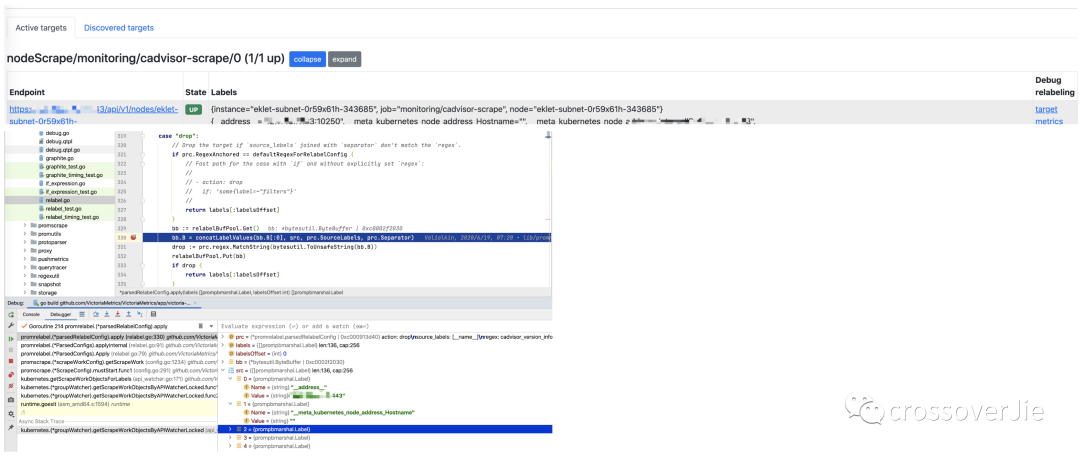 然后来看看 relabel_configs 没有按照预期生效的原因。