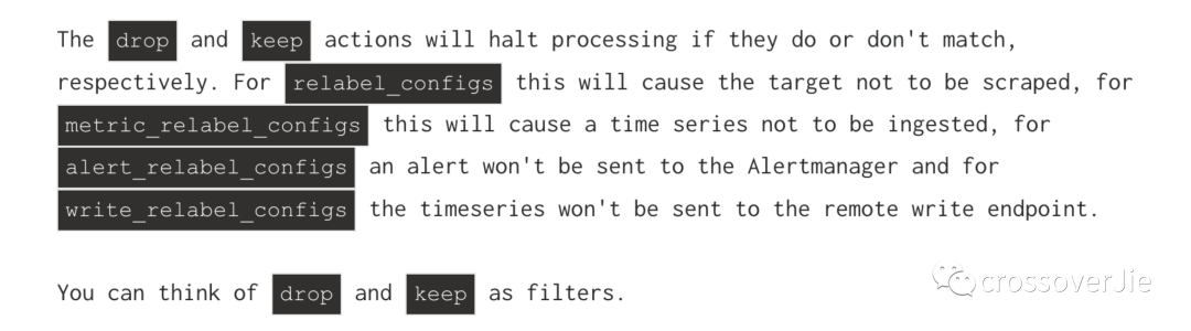 也就是前文讲到的 relabel_configs 应用于指标抓取前,metric_relabel_configs 应用于指标抓取后。