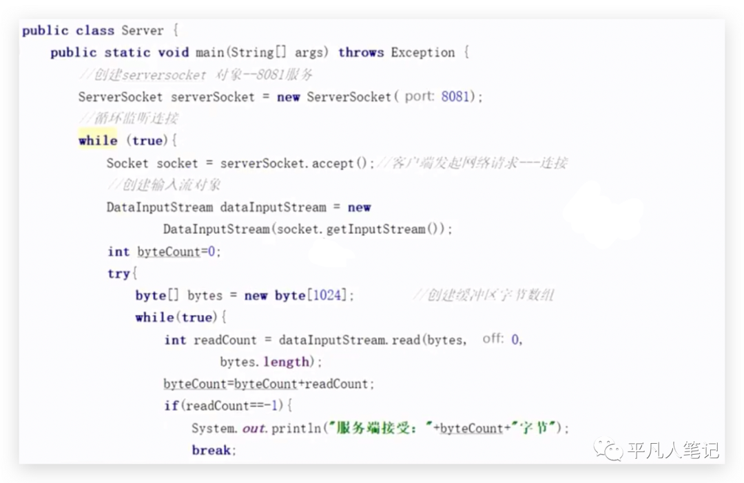 Server端(服务端)启动,模拟一个消费者即专门启动一个Server Socket监听,接受到数据,把数据读出来就可以了。