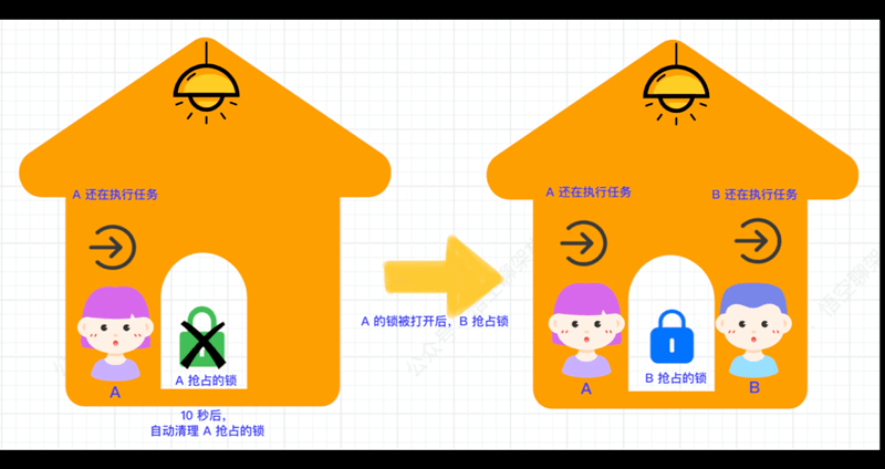 用户 B 还在执行任务,发现锁已经被打开了。 -