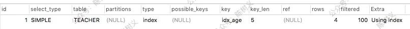 | 1 | SIMPLE | film | index | NULL | idx_name | 33 | NULL | 3 | Using index |