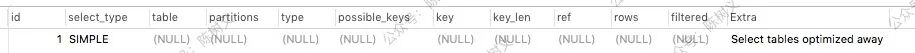 NULL 表示 MySQL 能够在优化阶段分解查询语句,在执行阶段用不着再访问表或索引。