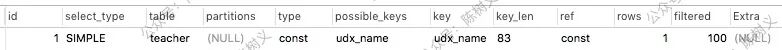 表只有一行记录(等于系统表),这是 const 类型的特列。