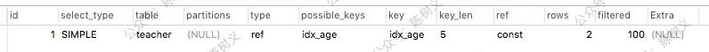 在我们所执行的 SQL 前面加上 explain 关键字,MySQL 就不会真正去执行这条语句,而是模拟优化器执行 SQL 查询语句,最后会输出一系列的指标告诉我们这条语句的性能如何,如下图所示。