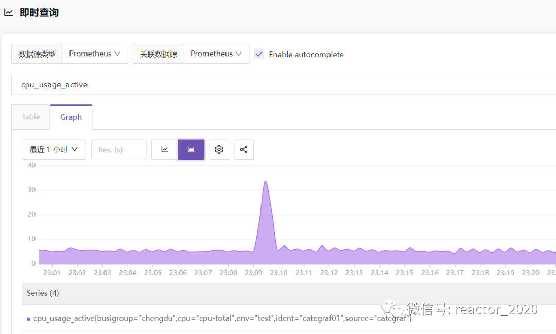指标cpu_usage_active{busigroup="chengdu",cpu="cpu-total",env="test",ident="categraf01",source="categraf"}标签说明:
