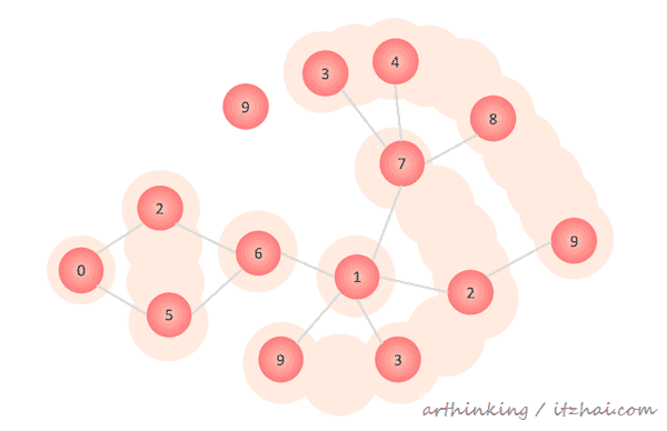 更新数组中的某一个元素的过程中,与范围查询相反,我们不断的根据LSB计算到下一个元素位置,同时给该元素更新数组。如下,更新A[9],会级联查找到以下红色的位置的元素: