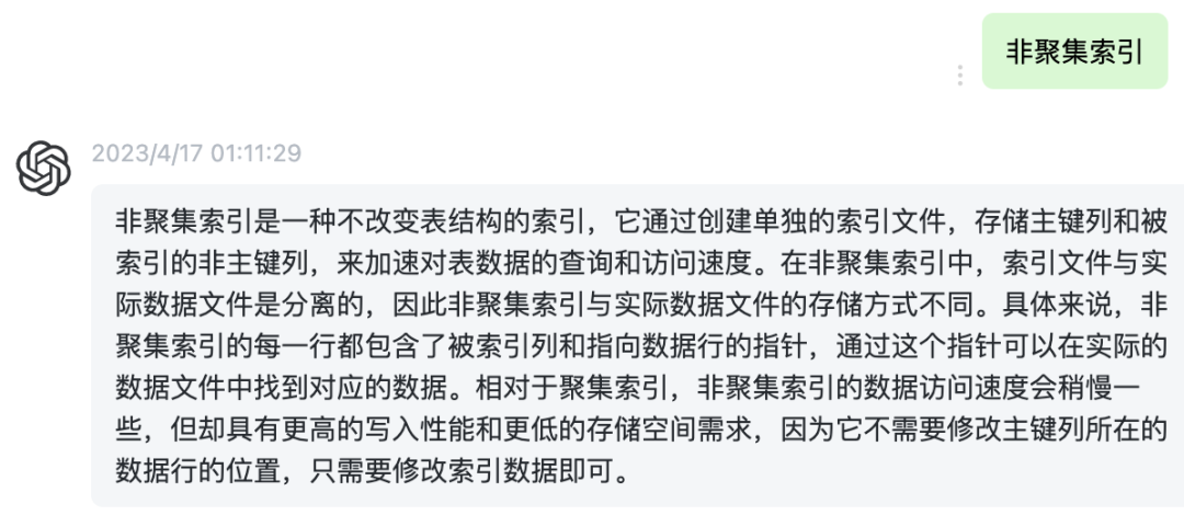 3、非聚集索引