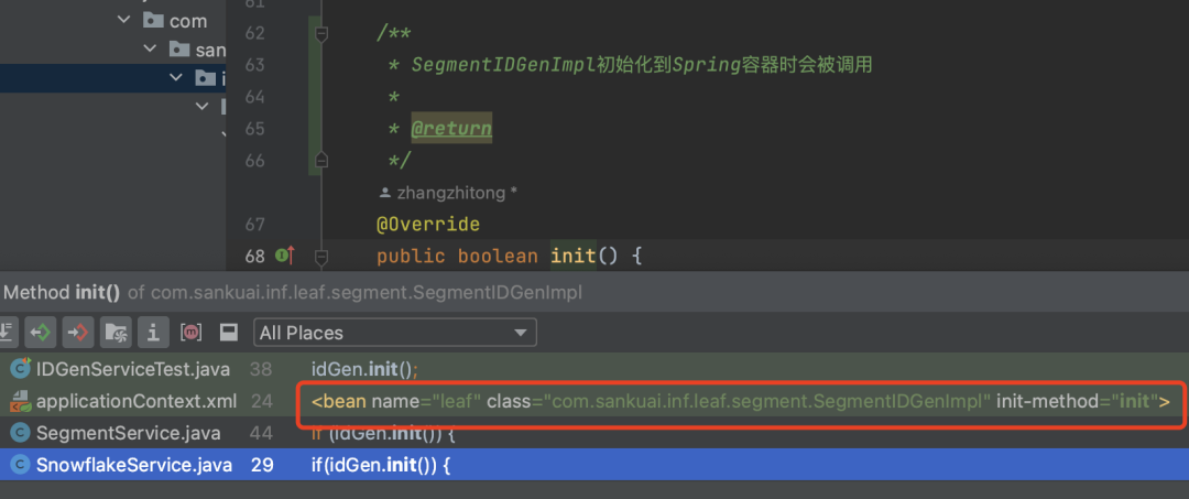 * SegmentIDGenImpl初始化到Spring容器时会被调用