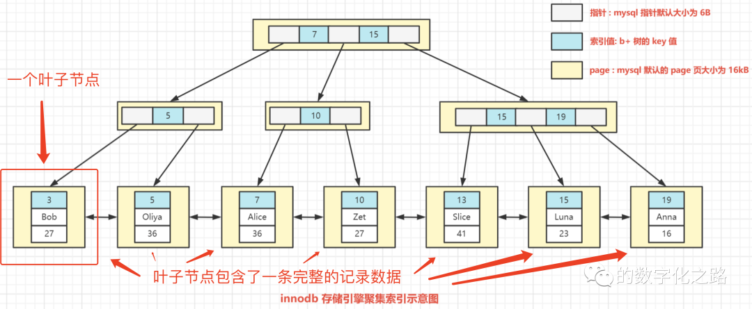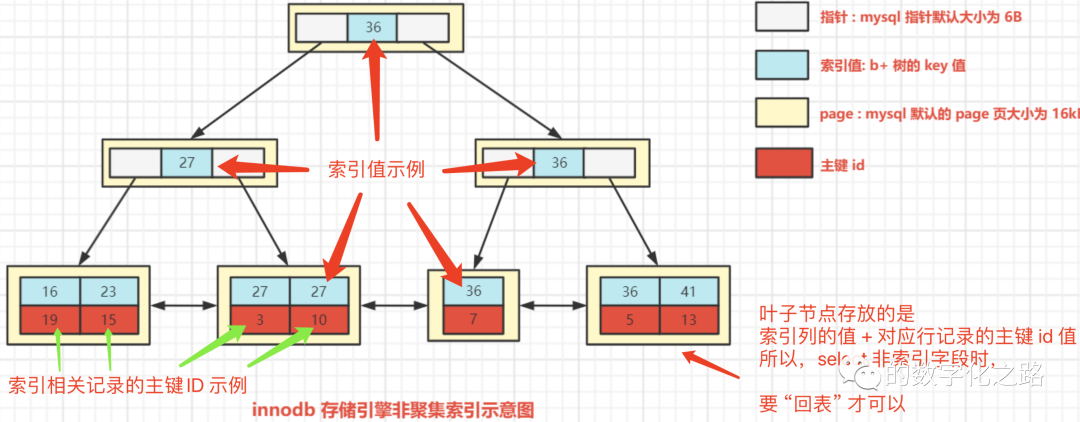 Innodb 以 age 建立的非聚集索引如下图