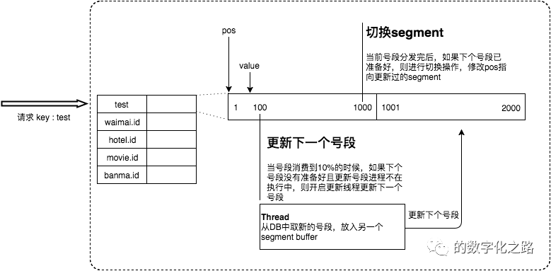 * 则另启一个更新线程去更新下一个号段