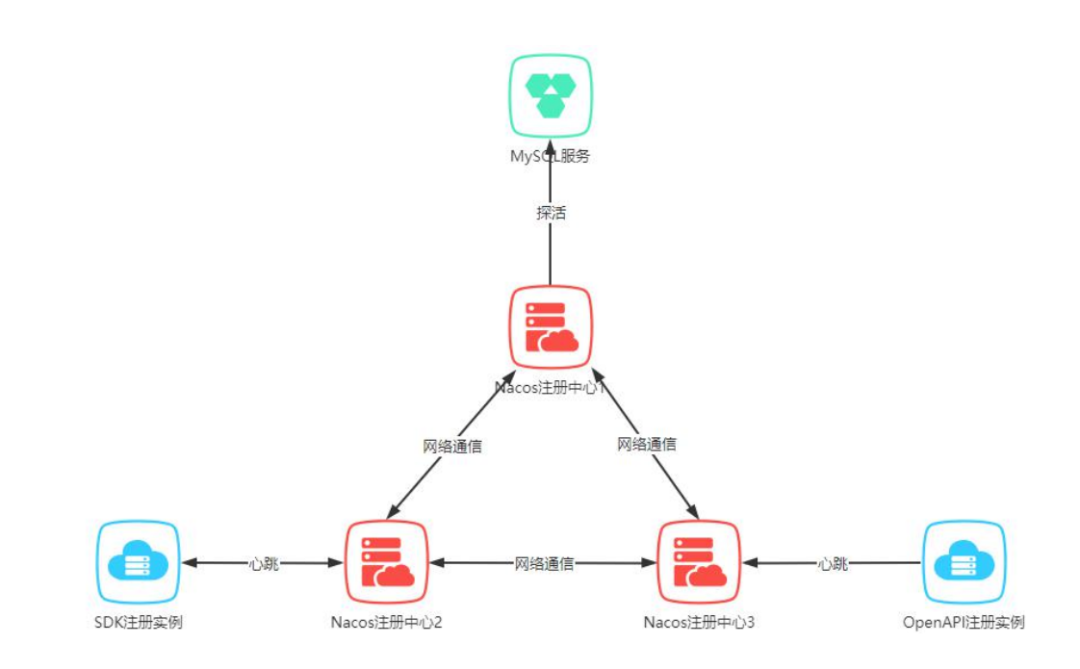 永久实例使用的服务器端反向探测的方式实现健康检查的,它的探测周期是 2000 毫秒 + 随机数(5000 毫秒以内),如果检测异常会将此服务实例,标记为非健康实例,但不会把服务实例向临时实例那样进行删除。Nacos 服务器反向探测目前内置了 3 种探测协议:HTTP 探测、TCP 探测和 MySQL 探测。⼀般而言 HTTP 和 TCP 探测已经可以涵盖绝大多数的健康检查场景,MySQL 主要用于特殊的业务场景,例如数据库的主备需要通过服务名对外提供访问,需要确定当前访问数据库是否为主库时,那么我们此时的健康检查接口,是⼀个检查数据库是否为主库的 MySQL 命令。