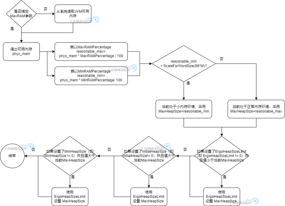 开启后,首先检查系统内存大小是否足够 256 MB,如果不够会报错,够得话,会计算出一个目标堆大小: