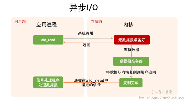 下面是异步IO(asynchronous I/O)的执行流程流程: