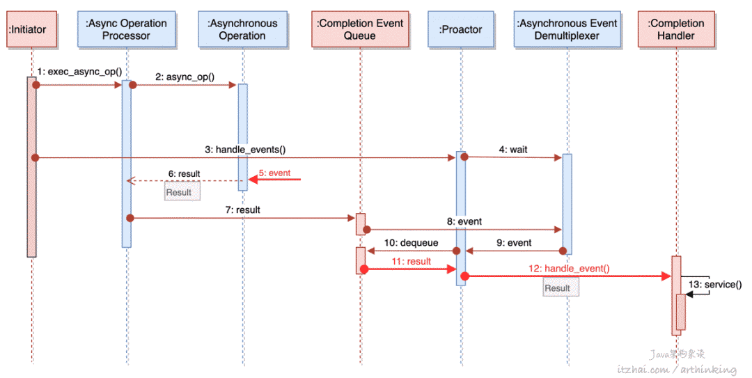 Proactor主动器进一步调用异步事件解复用器,等待事件的到来;