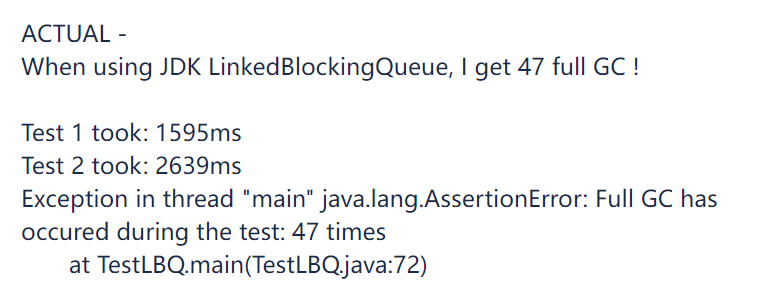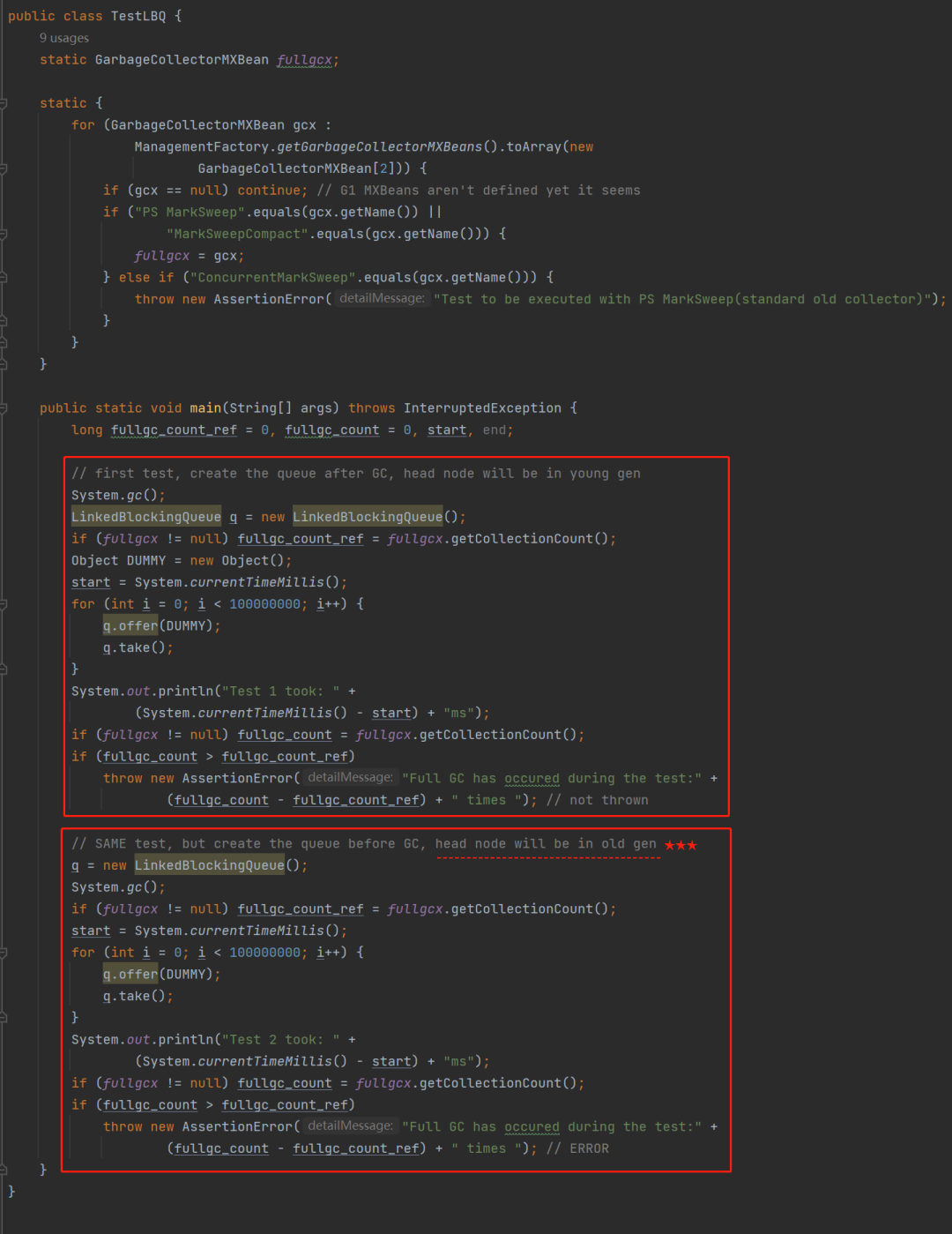 SAME test, but create the queue before GC, head node will be in old gen(头节点会进入老年代)