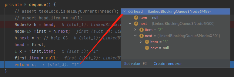 这个方法就是从队列的头部,删除一个节点,其他啥也不干。
