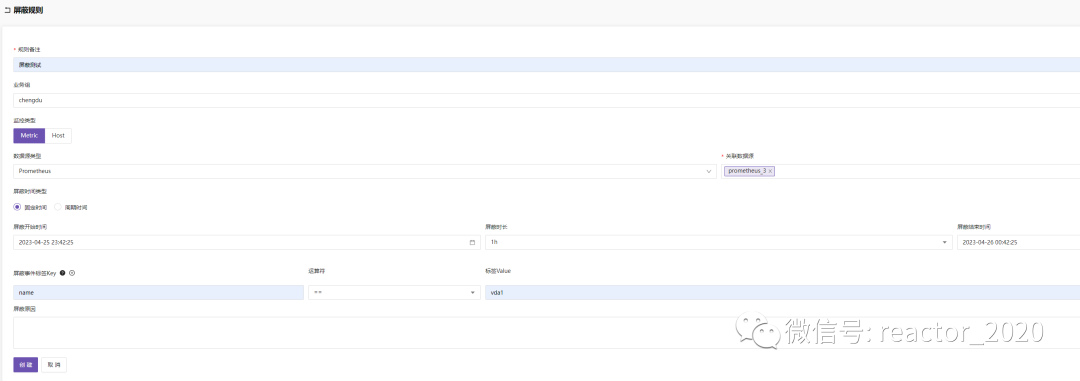 【告警屏蔽】菜单实现告警屏蔽规则或者说告警静默规则,支持固定时间和周期时间,比较灵活,可以根据事件源屏蔽,也可以根据事件标签屏蔽: