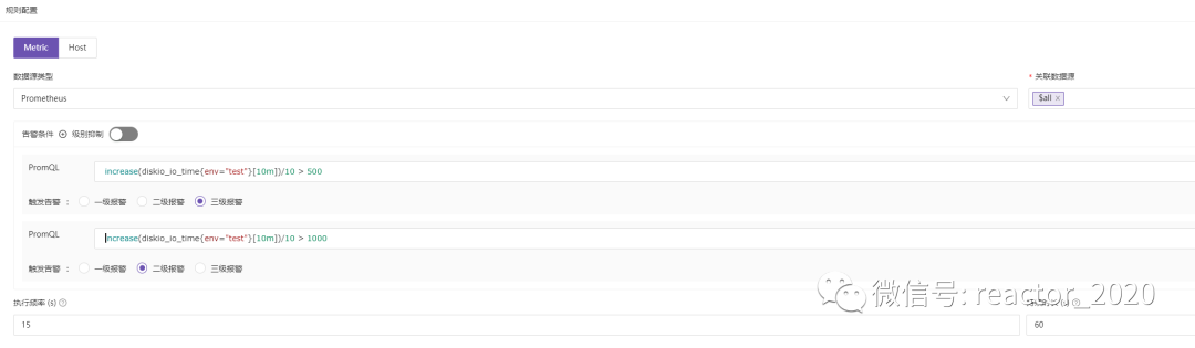 执行频率: PromQL执行周期间隔,单位:秒。 -