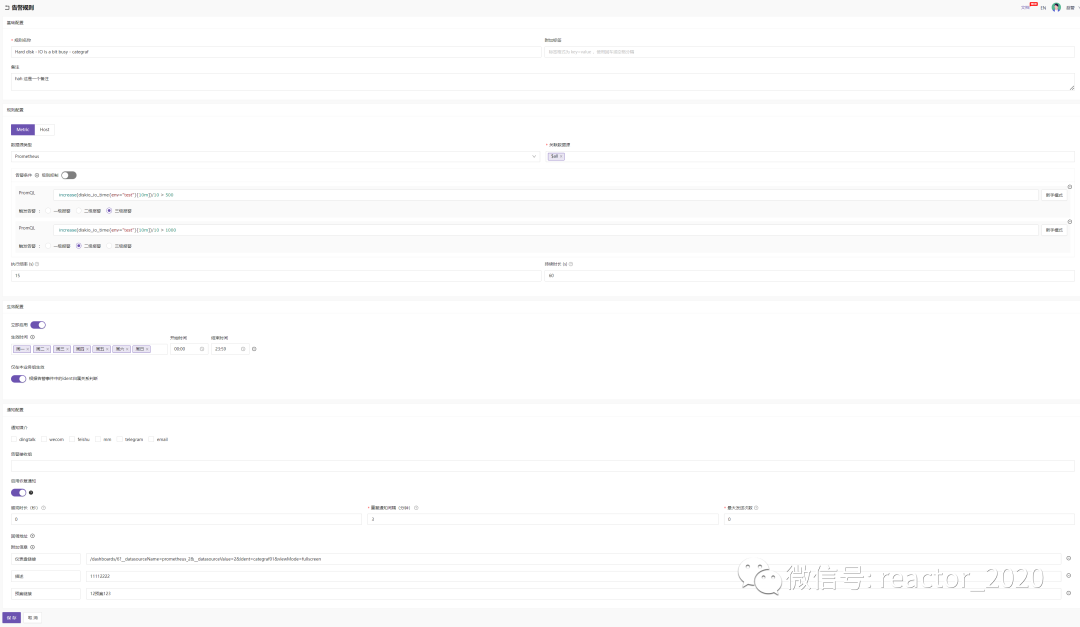 留观时长:该参数主要预防告警波动,比如告警恢复后几十后又触发, -