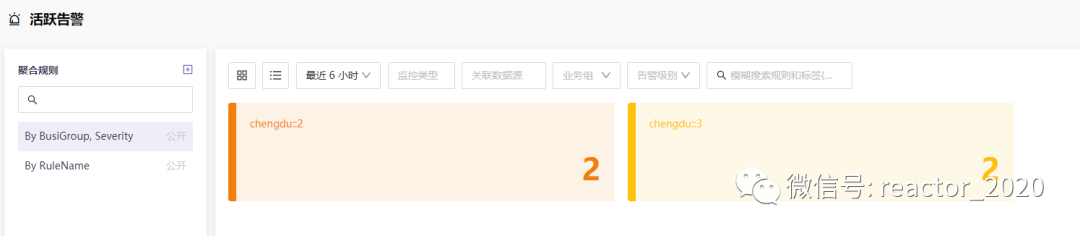 【活跃告警】菜单展示当前触发中的告警,可以从业务组和告警等级维度展示: