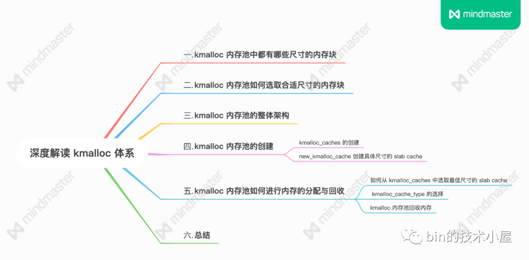 最终内存块的分配和释放还需要由底层的 slab cache 来负责,经过前两个小节的介绍,现在我们已经对 kmalloc 内存池架构有了一个初步的认识。