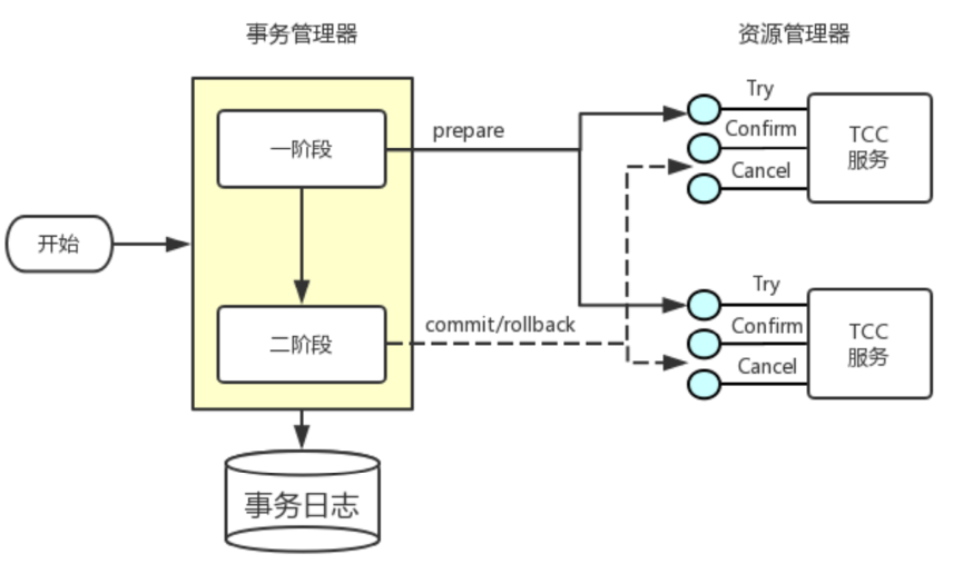 TCC是分布式事务的一种解决方案,它也是一种2PC模型。