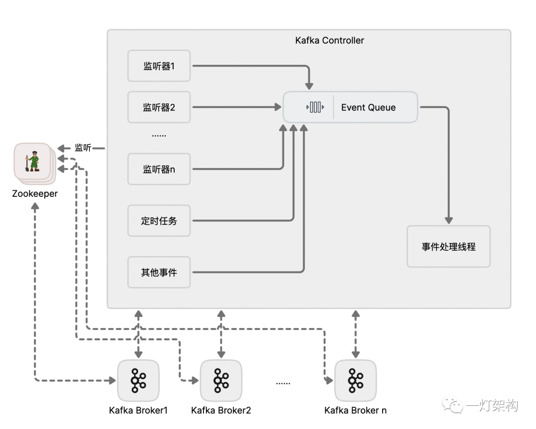 所有非Controller的 Broker 都会在 Zookeeper 中对