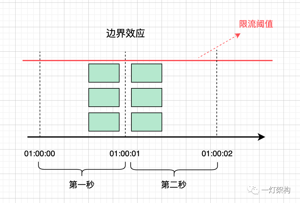 例如:限流是每秒3个,在第一秒的最后一毫秒发送了3个请求,在第二秒的第一毫秒又发送了3个请求。在这两毫米内处理了6个请求,但是并没有触发限流。如果出现突发流量,可能会压垮服务器。