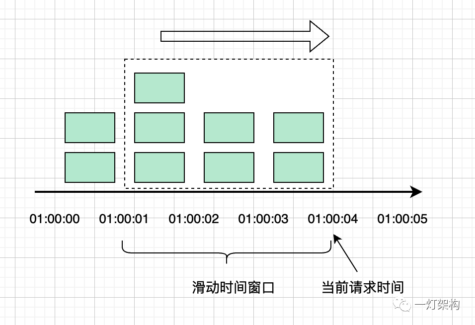 实现原理是: 每来一个请求,就向后推一个时间窗口,计算这个窗口内的请求数量。如果请求数量超过限制就拒绝请求,否则就处理请求,并记录请求的时间戳。另外还需要一个任务清理过期的时间戳。