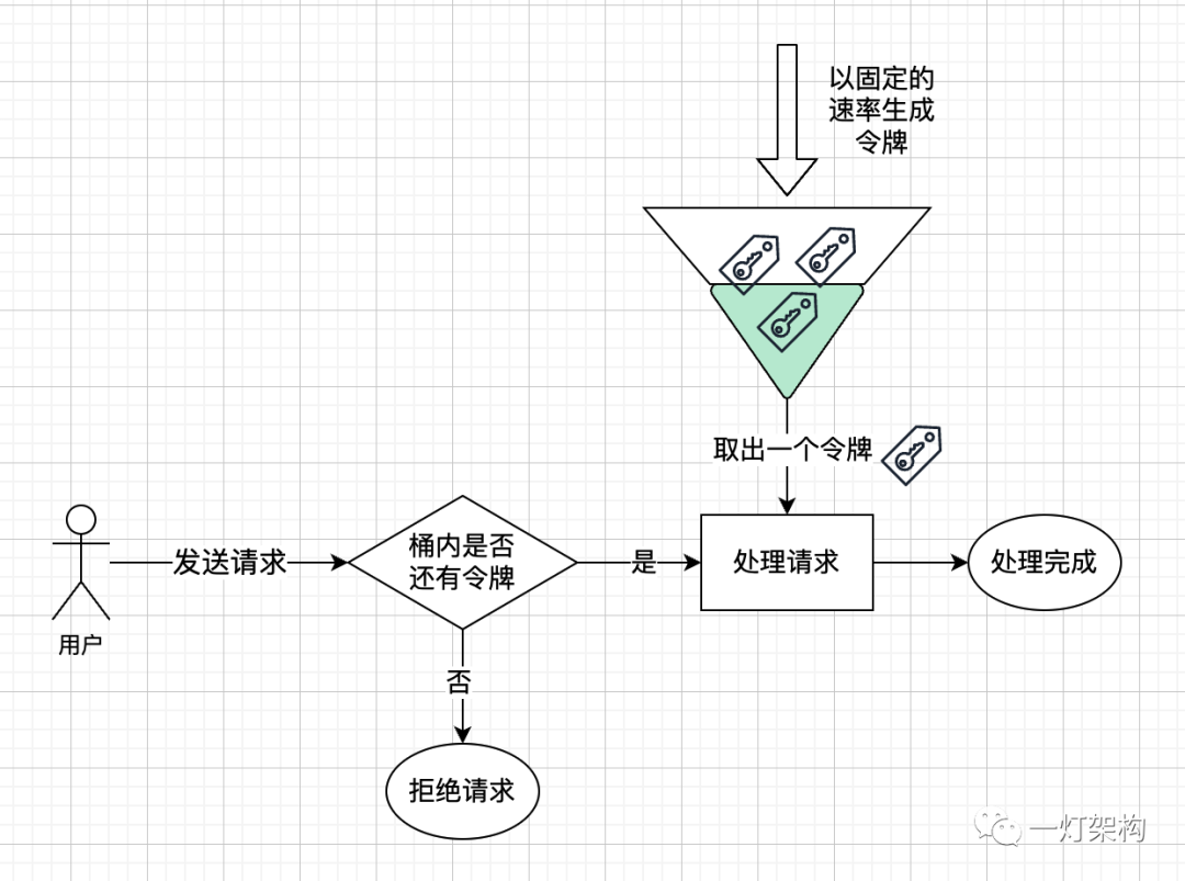 桶中的令牌数不能超过桶的容量,如果新生成的令牌超过了桶的容量,那么新的令牌会被丢弃。