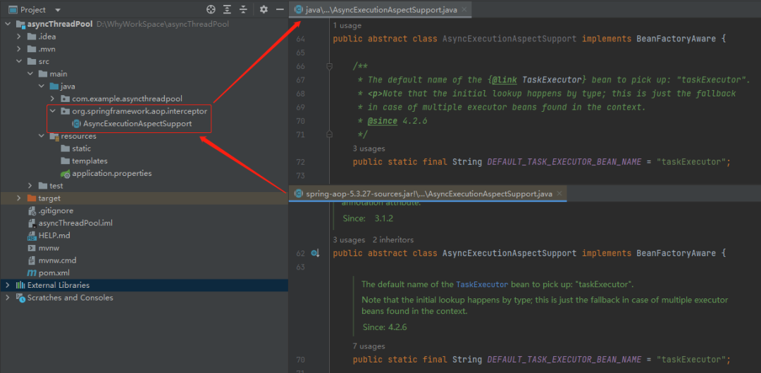 这样,我们就能针对我们自己项目中的 AsyncExecutionAspectSupport 类进行修改: