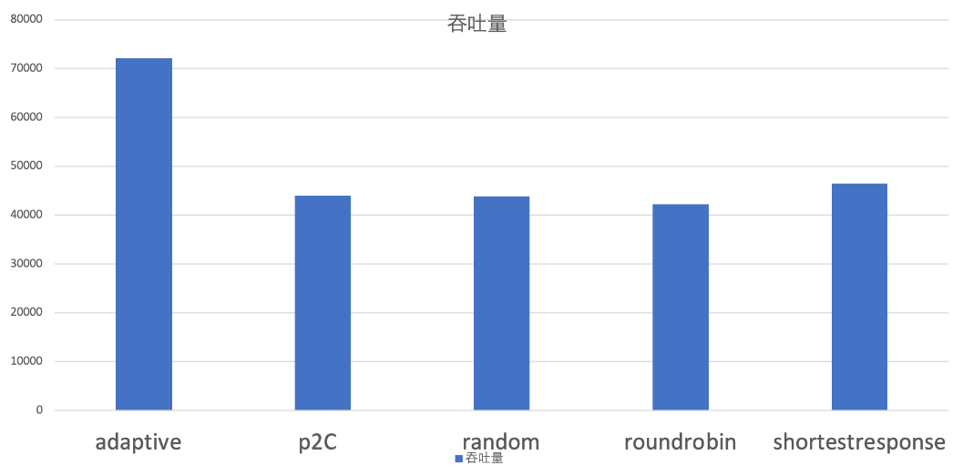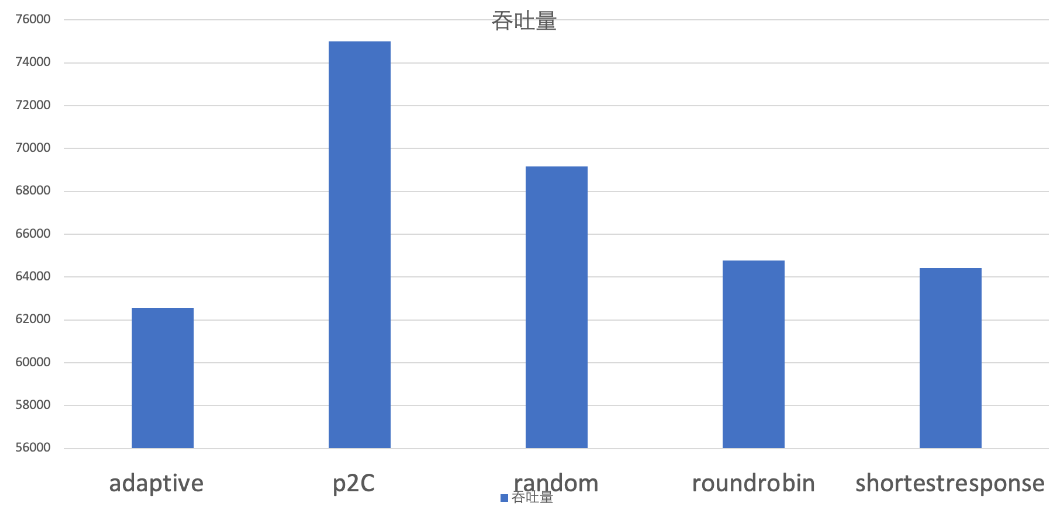 当服务提供端的机器配置比较均衡时,既每台机器的处理能力都差不多,甚至时一样的时候,可以看到 p2c 算法的吞吐量,遥遥领先: