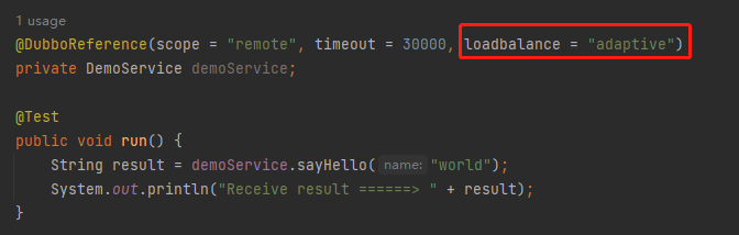 如果要启用自适应负载均衡算法,需要在服务引用的地方进行指定:
