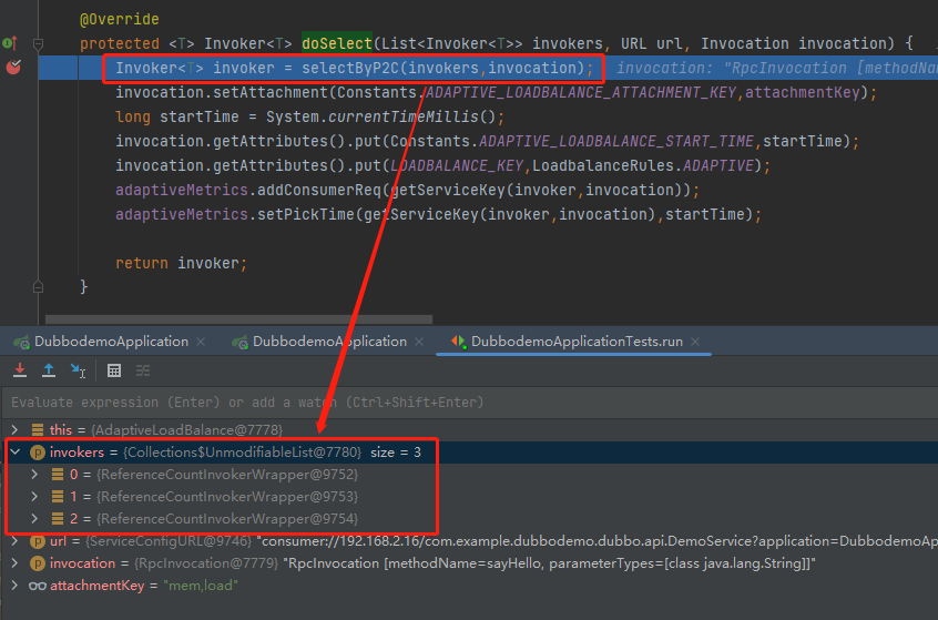 在我们的 Demo 中,选出来的就是 2,1 这两个 invokers: