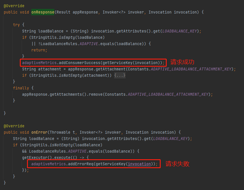 同时在这里还维护了 AdaptiveMetrics 的 consumerSuccess(请求成功)、errorReq(请求失败)这两个属性: