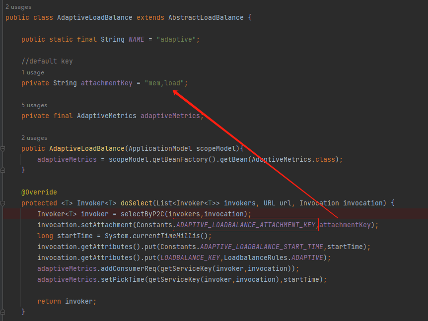 甚至和 load 都没有任何关系,只要 ADAPTIVE_LOADBALANCE_ATTACHMENT_KEY 不是空就行。