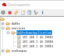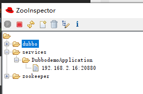 通过 ZooInspector 工具,可以看到在 20880 端口有一个服务提供者了: