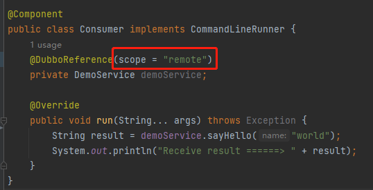 因此需要在服务引用的地方,加上 scope="remote" 配置:
