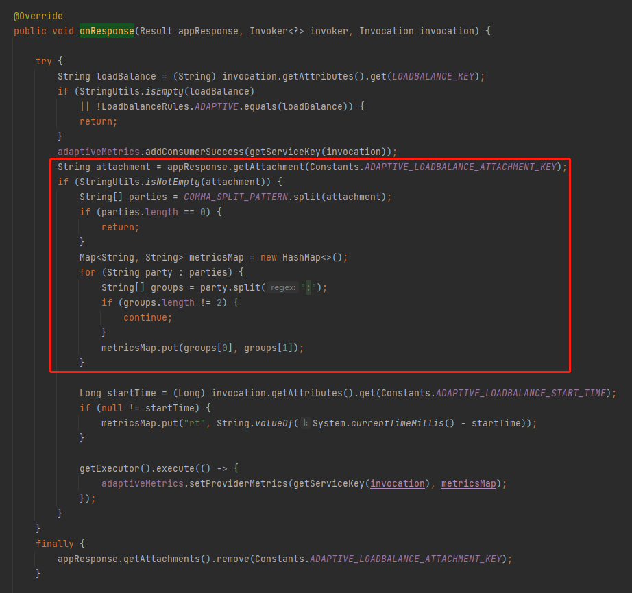 这部分代码是在对 ADAPTIVE_LOADBALANCE_ATTACHMENT_KEY 这个字段进行处理。