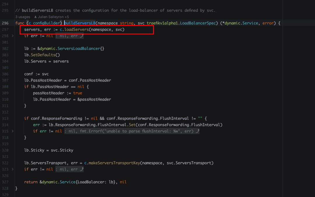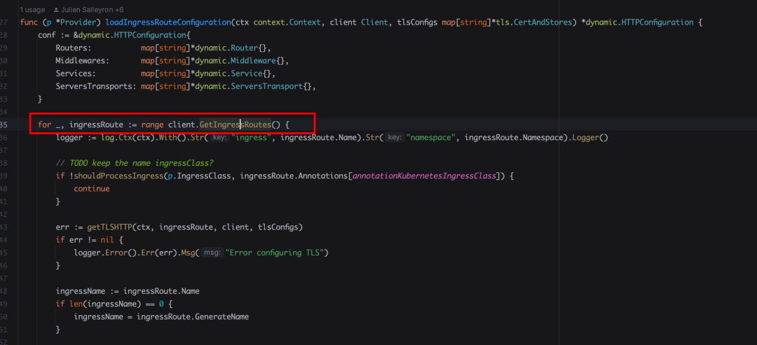然后让我们回到 loadConfigurationFromCRD这个方法中,找到loadIngressRouteConfiguration方法,这里就是启动的时候去做服务发现的地方。